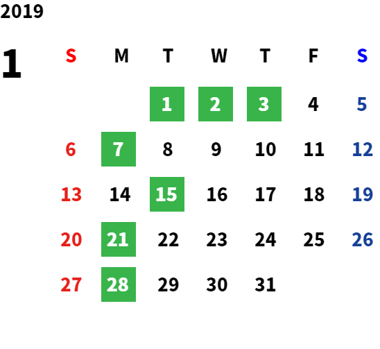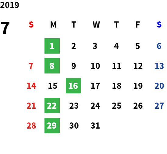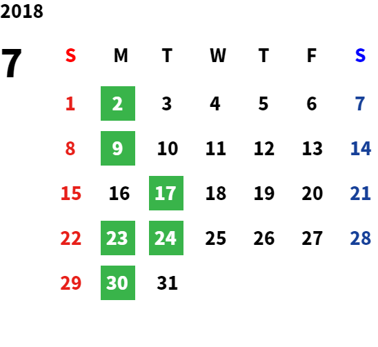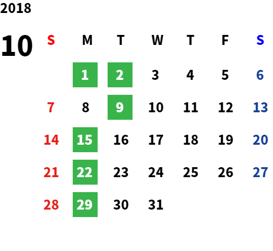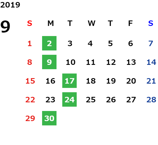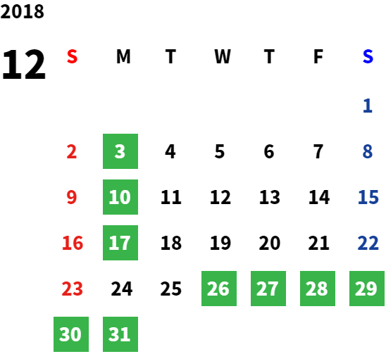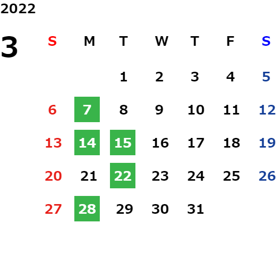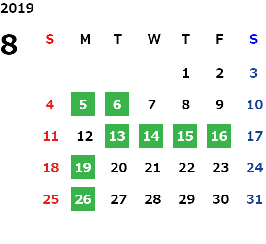 営業日カレンダー