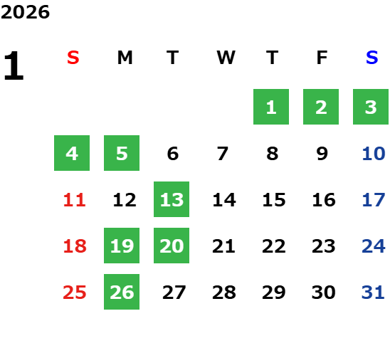 詳しくは店舗カレンダーをご確認ください