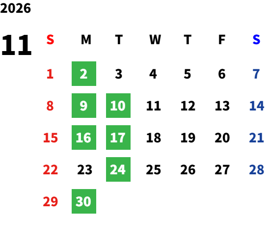 営業日カレンダー