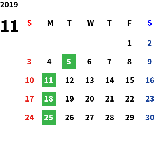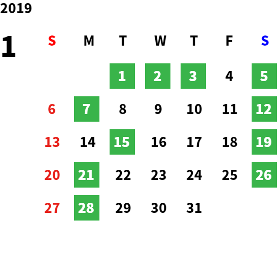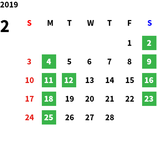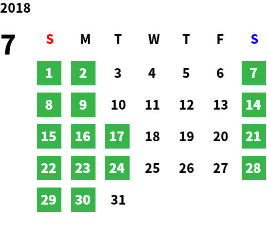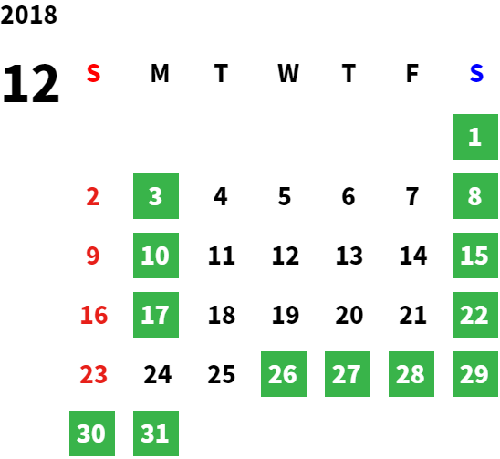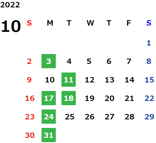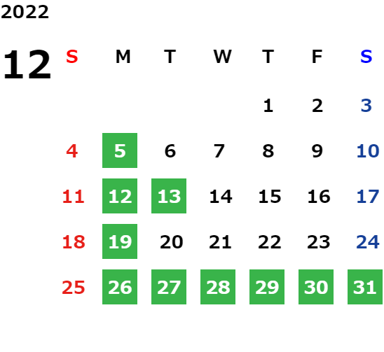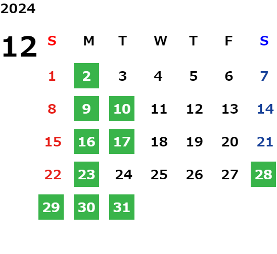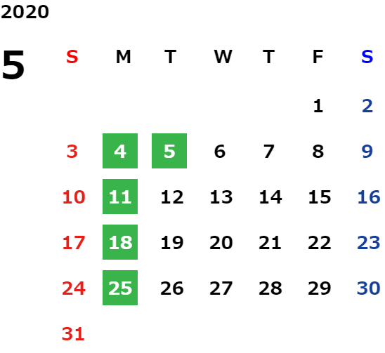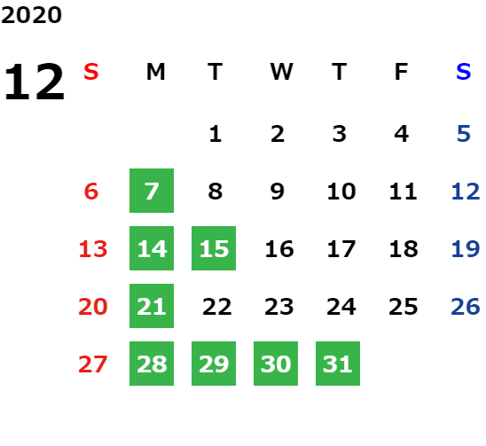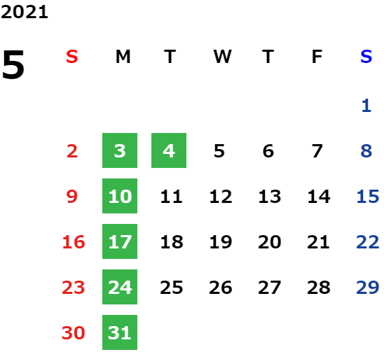 営業日カレンダー