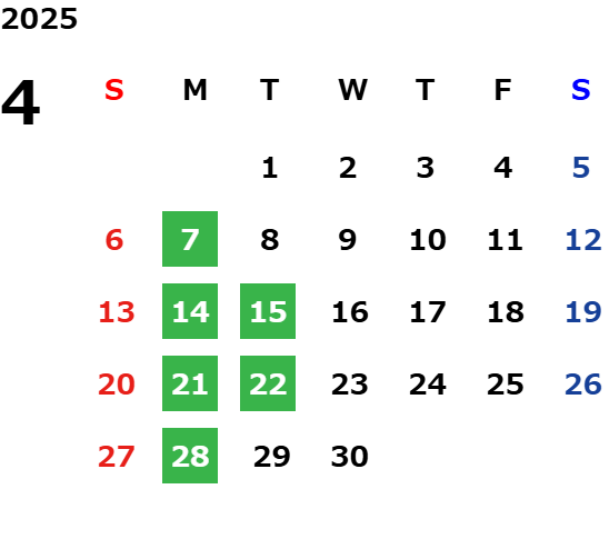詳しくは店舗カレンダーをご確認ください